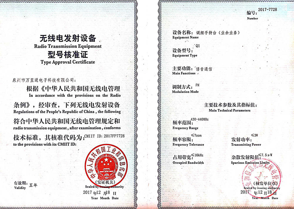 萬里通UV5F plus核準證